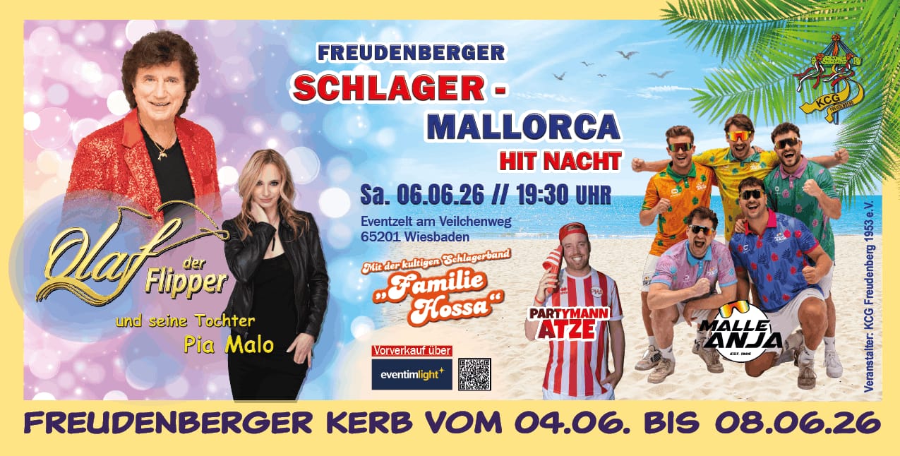 🎉🌴 Freudenberger Schlager–Mallorca Hit Nacht 2026 🌴🎉 Feiert mit uns die größte Party der Kerb! Am Samstag, 06.06.2026 um 19:30 Uhr verwandelt sich das Eventzelt am […]
